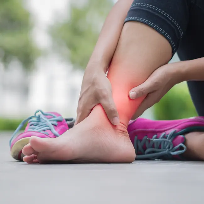 Ankle and foot injuries can range from sprains and fractures to chronic conditions like plantar fasciitis and Achilles tendonitis. These injuries often result in pain, swelling, and impaired mobility, affecting daily activities and athletic performance. We offer targeted rehabilitation programs tailored to your specific condition, including manual therapy, custom orthotics, and advanced laser and ultrasound to restore function and prevent re-injury. Our team utilizes the latest technology to accelerate healing and ensure a swift return to your regular activities.